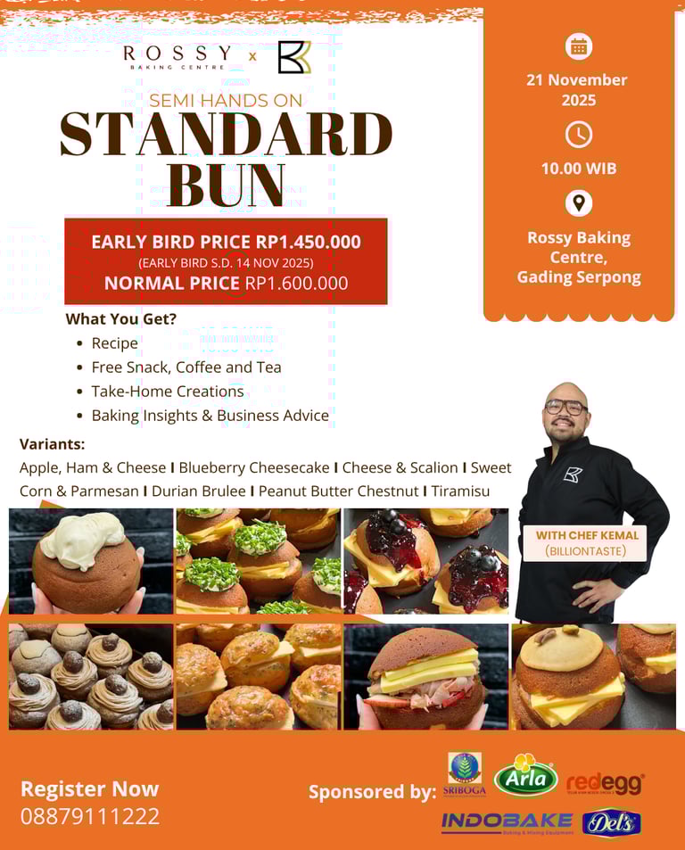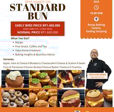Semi Hands On with Chef Kemal from Billion Taste! Kamu akan mempelajari cara membuat Standard Bun yang bervariasi dan bikin nagih!